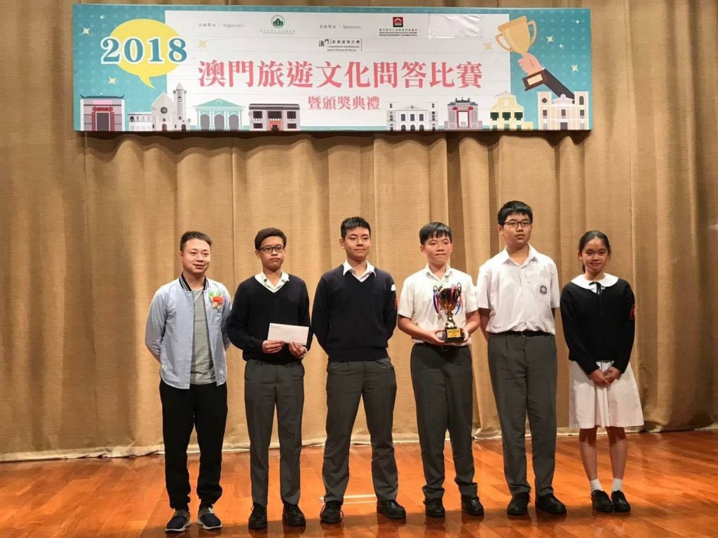 2018 澳門旅遊文化問答比賽,由張海珊老師指導,初二信(自然風格隊)獲亞軍,初一信望(哈哈哈哈哈隊)獲季軍。