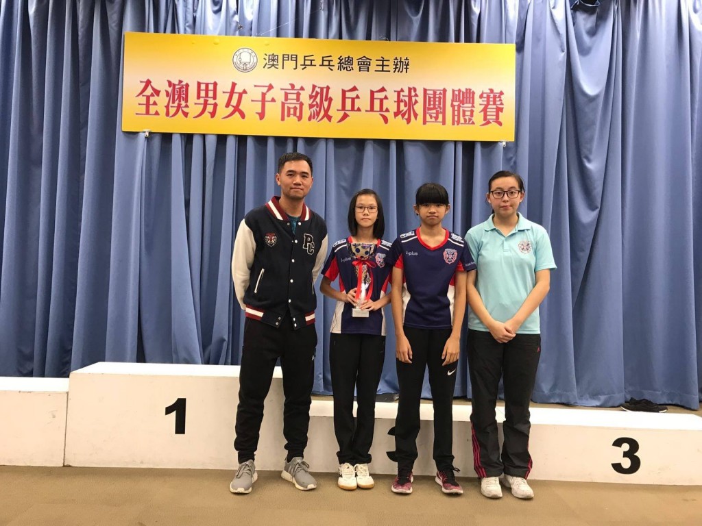 在今晚結束的全澳男女子高級乒乓球團體賽上,本校學生陶昶(高二善)和兩位小將吳詠嫣(初一善)、黃樂遙(初一信)不畏強手,脫穎而出,勇奪團體第三名。