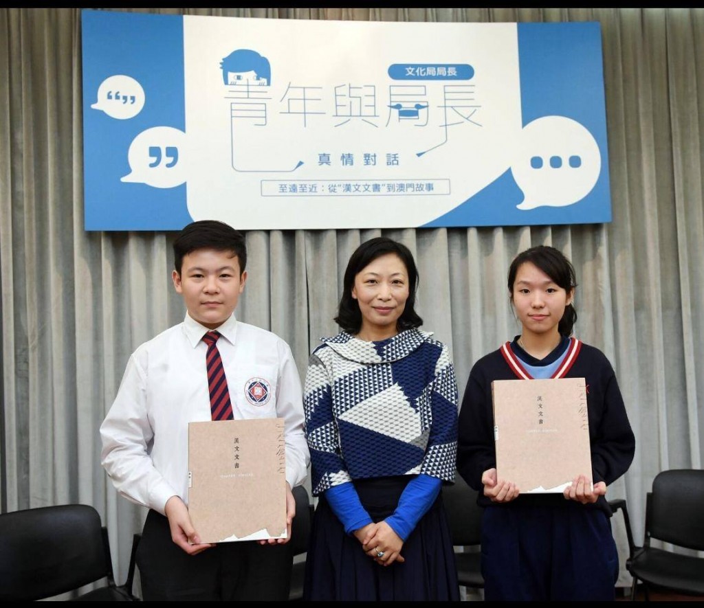「青年與文化局局長真情對話」座談會日前在澳門檔案館舉行,本校張海珊老師帶領部分初一二學生出席。同學們先在劉芳館長帶領下參觀《漢文文書》展覽,隨後文化局局長穆欣欣跟學生們分享「至遠至近:從『漢文文書』到澳門故事」,以及文化局對於檔案文獻的保護與推廣利用的經驗。在問答交流環節中,同學們積極提問,問題具創意,他們的表現獲得主辦單位高度讚賞。