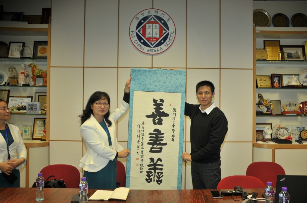 本年9月,本校與廣西北海市第二實驗學校簽約成為友好學校,為了加深兩校的互相瞭解,進一步進行兩校間的文化交流。12月17-19日,北海市第二實驗學校一行37人蒞臨本校,進行為期三天的學習交流活動,受到本校行政、師生熱情接待,本校陳敬濂副校長及馮少嫻主任向來賓介紹了培正的發展概況和辦學成果,以及本校的特色課程等。