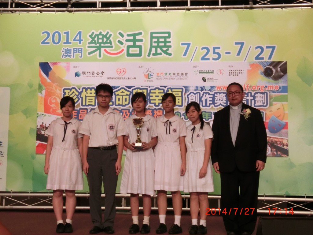 本校學生日前參加由澳門活力家庭議會主辦「珍惜生命與幸福 - 創作獎勵計劃 」活動,初三唐樂臨、潘凌子、蔡詠琦、鄧詠莊,高一許嘉瑩、梁淦峰憑話劇《回家了》獲最高獎項「最具意義作品獎」,初三張天祐、黃倩婷、樊泳姿、馮嘉琪、周子筠、梁子露憑短片獲「主題觸動獎」,初三梁頌宏、黃舒韻、易敏彥憑文章分享獲優良作品獎,初三曾浩倫、林文浩、張天祐同以文章分享獲入選獎。