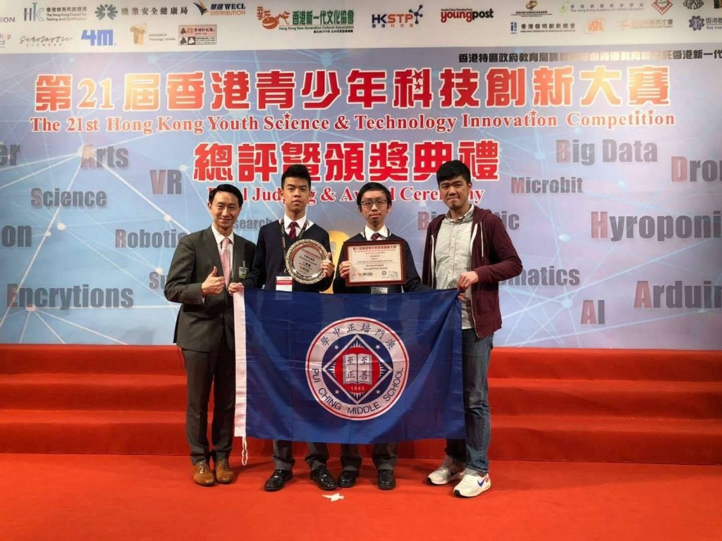 本校高二同學陳鎧之、楊可忠及指導老師吳穎祺前往香港參加第21屆香港青少年科技創新大賽,其作品AMASS(Aerial Mapping And Scouting System) 於是次比賽中獲得外隊交流二等獎。