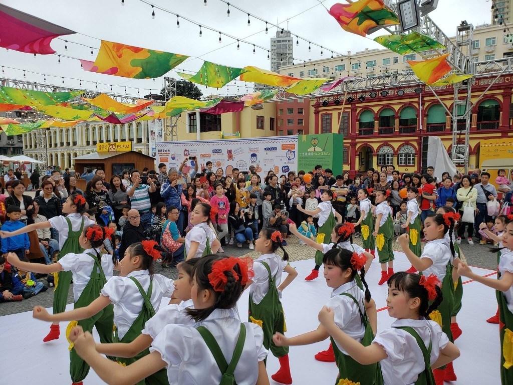 今天下午,本校小學舞蹈隊及高二唐焯恆同學在「齊齊葡」活動上,分別表演舞蹈《天天向上》及演唱葡語歌曲《Os azeitonas - Ray-dee-oh》,受在場觀眾好評。