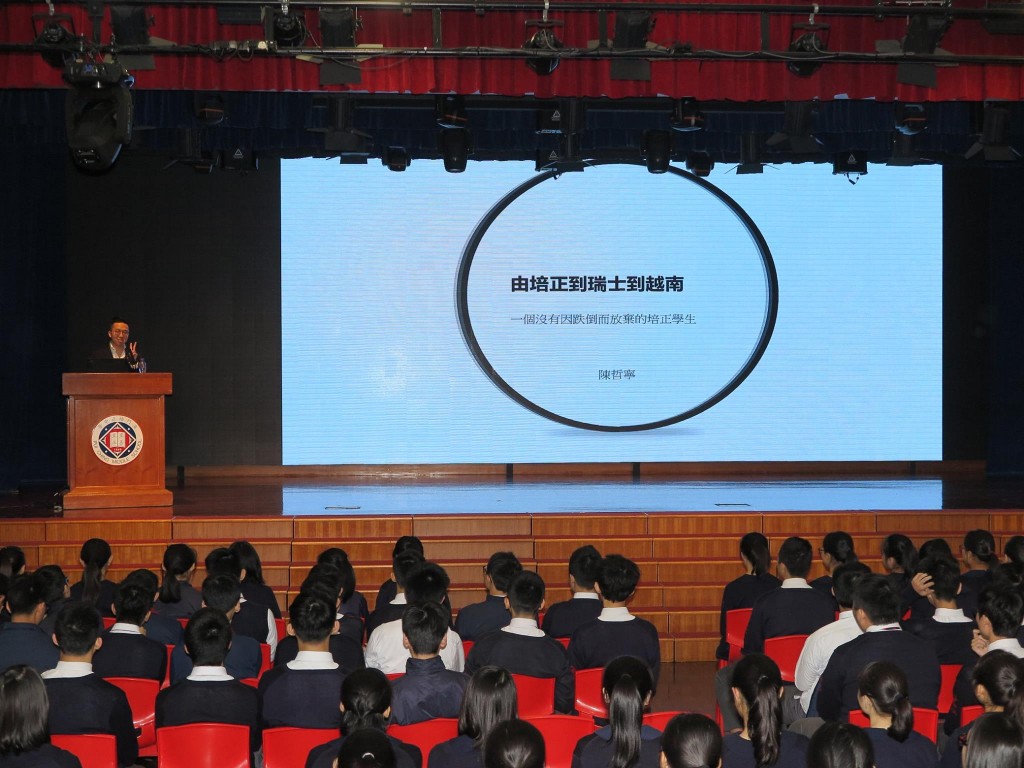今天上午,陳哲寧校友專程回澳,為中學同學主持兩場周會。講座內容精彩,回顧其在校生活,以及勇於創業的奮鬥故事,鼓舞著學弟學妹。