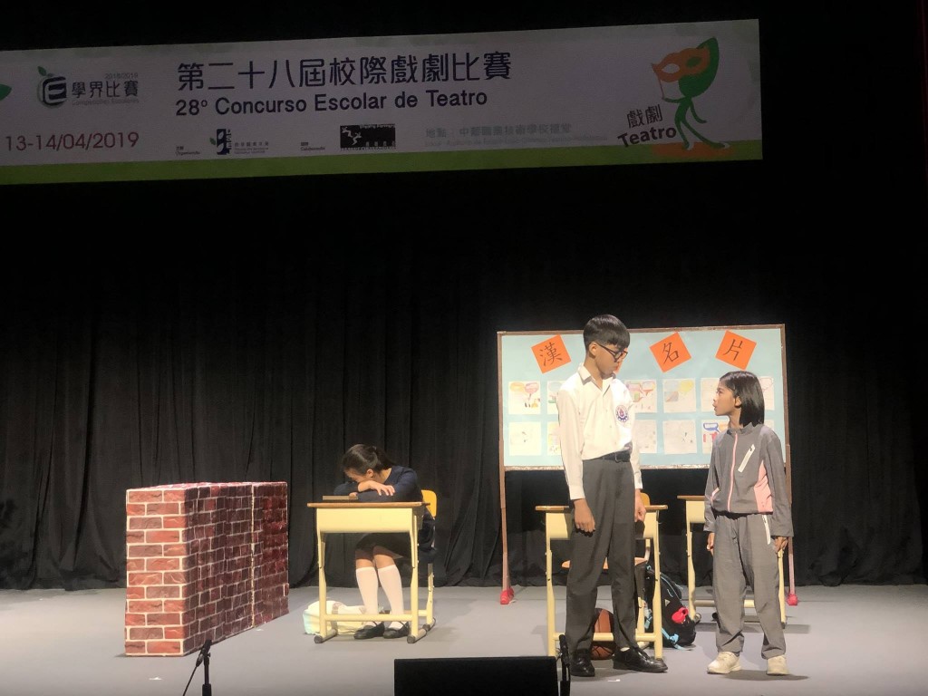 第二十八屆校際戲劇比賽(小學組)今日假中葡職業技術學校舉行。由方秀娟老師、譚重儀老師、鄭智伶老師指導,小六施人銘、小五馮芷穎、胡卓軒及曾希睛憑《寶物》一劇獲得優良獎。同時,高二劉芷璇、初三彭開元獲得優秀導演獎,初三張柏聰、彭開元獲得劇本創作獎,小六施人銘丶小五馮芷穎和胡卓軒獲優秀演員奬。