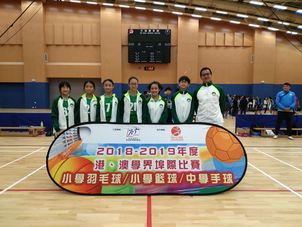 本校籃球代表許熙絡、陳曉晴、江梓琳、黃海嵐、何梓瑜、彭婉華,羽毛球代表何正維、黃莉茵、吳卓昕於今日代表澳門隊到香港參加2018-2019年度港、澳學界埠際比賽,男、女子籃球隊及羽毛球隊皆獲得團體亞軍。張永豪老師為男子籃球隊教練。
