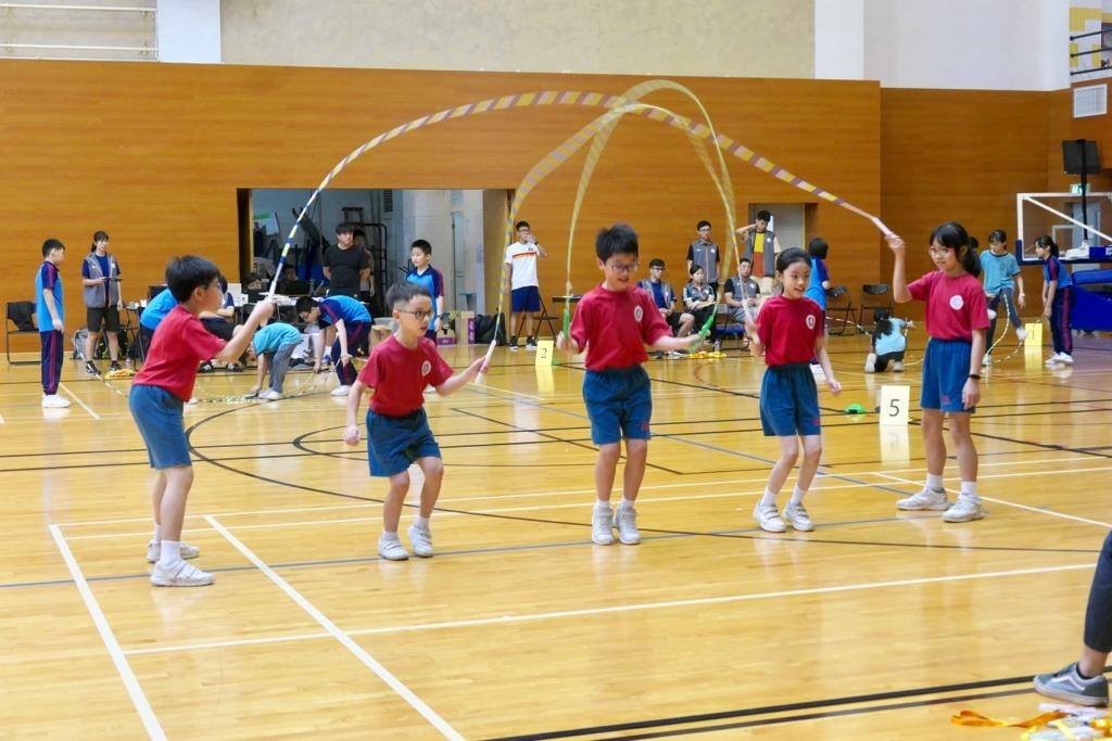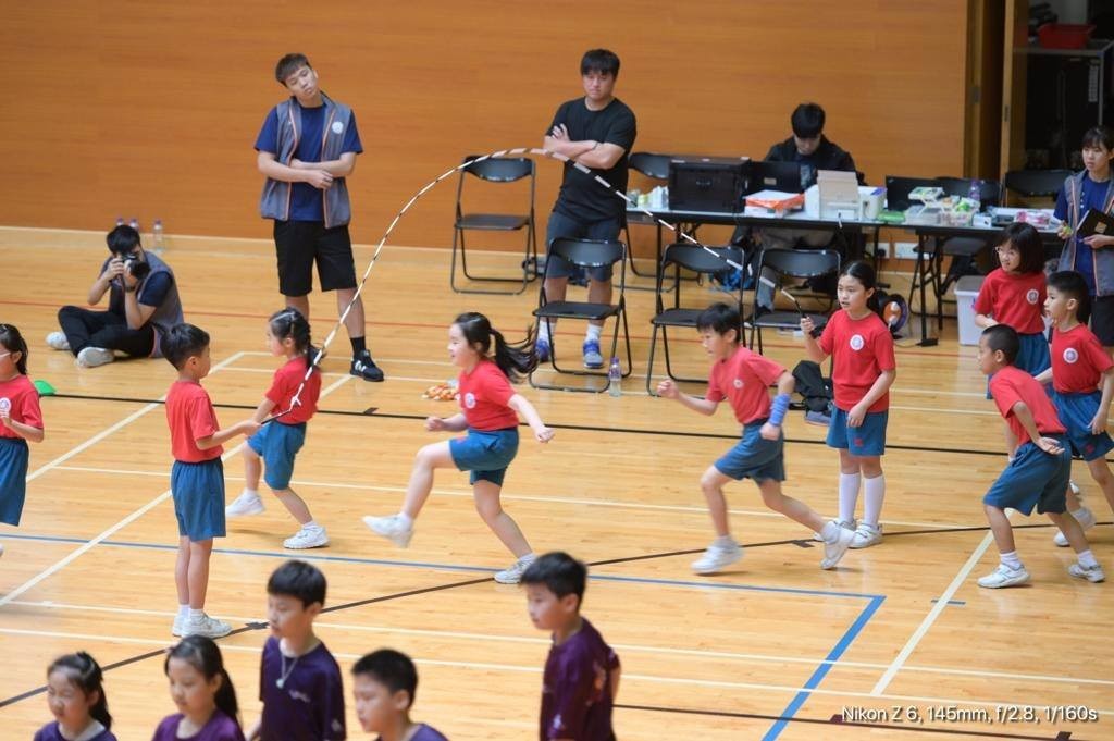 由教育暨青年局及中國澳門跳繩總會合辦的全澳學生跳繩嘉年華於今日上、下午在中葡職業技術學校體育館舉行。我校有27位小二至小五級的同學組隊參加了10人15秒速度跳接力賽、5人彩虹繩、10人走8字繩及第一套花式跳繩操四個項目的比賽。上下午的賽事,家長們都到場支持鼓勵子女的參賽。全隊同學們賽前認真練習,賽場上團結合作,互相鼓勵,賽出了水平。第一套跳繩操以72分的好成績獲得小學組第四名奬杯。