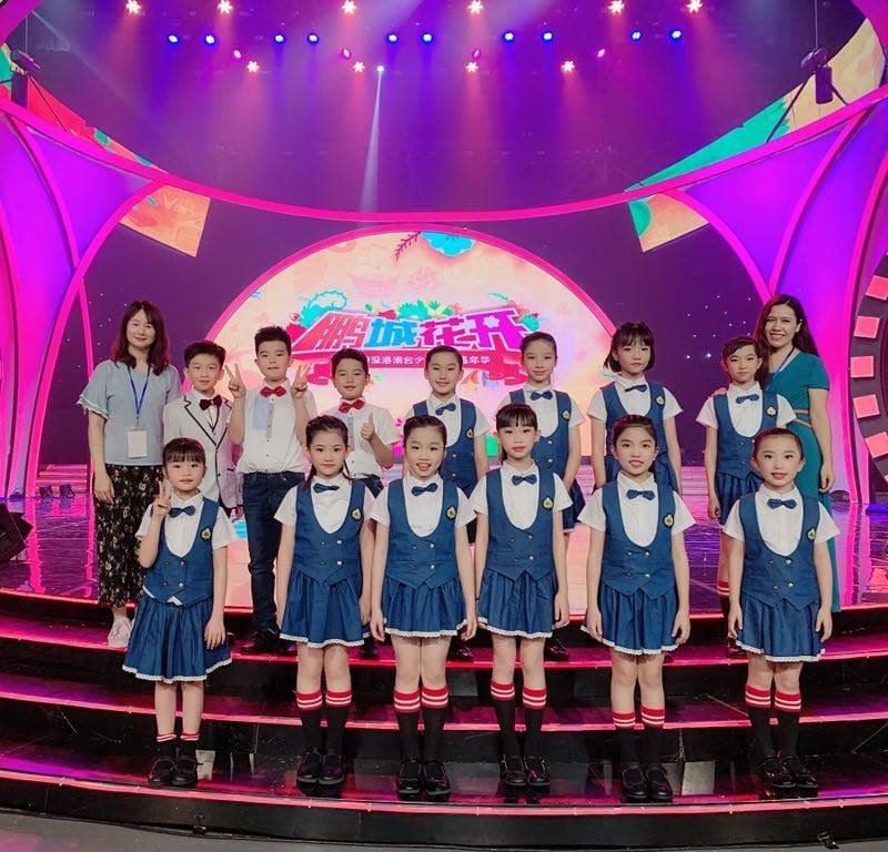 本校小學合唱團及小sing 星合唱團的13位成員由王穎瑩老師和陶仙蓉老師帶領下,獲邀代表澳門唯一表演隊於今天在深圳廣電集團1800演播廳參加錄製深圳廣電集團少兒頻道·花朵傳媒承辦的2019「鵬城花開」深港澳台少兒六一嘉年華晚會。