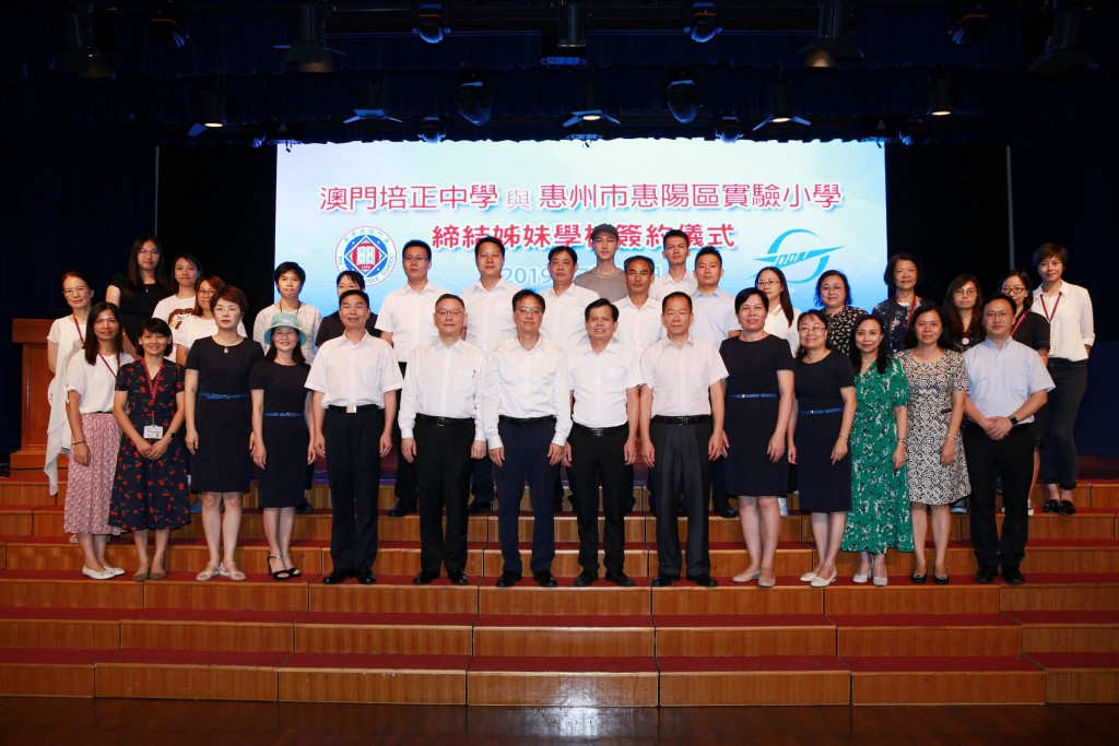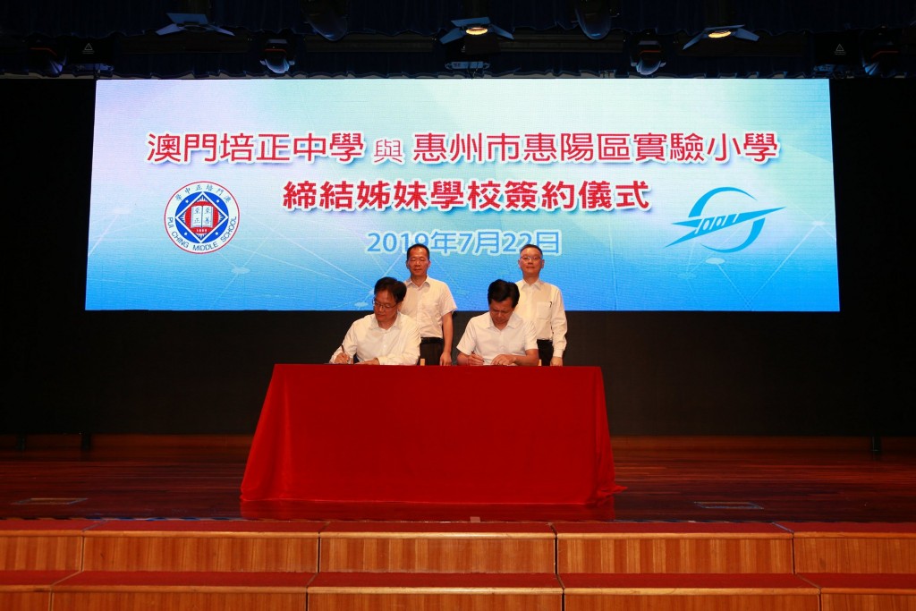 因科技教育結緣,以共同發展粵港澳大灣區科技教育為宏願,澳門培正中學與惠州市惠陽區實驗小學,於七月二十二日下午在培正禮堂舉行締結姊妹學校簽約儀式。