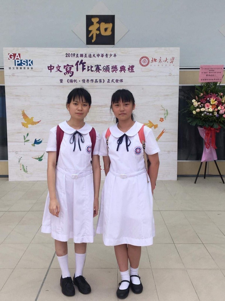 本校同學早前參加由北京大學語文教育研究所及香港GAPSK語文推廣委員會合辦的「互聯互通大中華青少年中文寫作比賽」決賽,成績卓越,獲獎者眾,其中部分同學日前往港出席頒獎典禮。決賽獲獎名單包括初三愛陳政良獲金獎,初二善趙卓穎、初三望張柏聰獲卓越獎,初一信高文駿、盧家煒、初一正朱嫣然、蘇可瑜、初二信陳俊康、初二望吳雪兒、梁倩欣、初二愛蘇琬喬、盧嘉欣、初三信林諾賢、張証然、葉皓軒、初三望林芷愉、初三愛張雅汶、初三善方慧欣獲優異獎。小六信江卓欣、林悅澄、袁詩慧、小六望王玥、甘凱甄、譚鎧宜、陳穎希、黃凱欣、羅天悅獲優異獎。