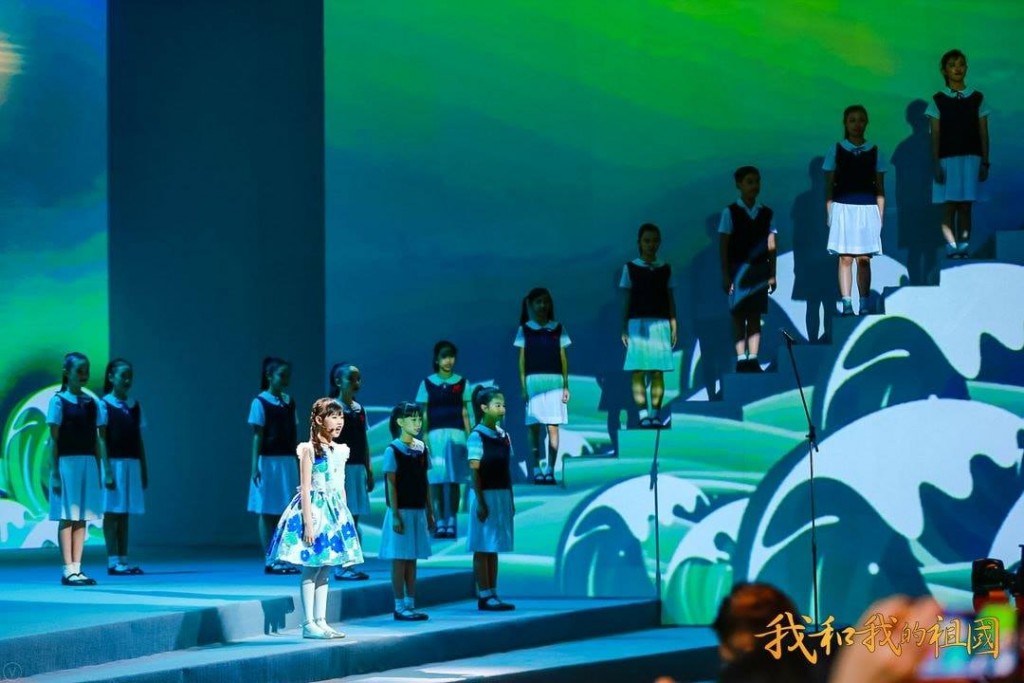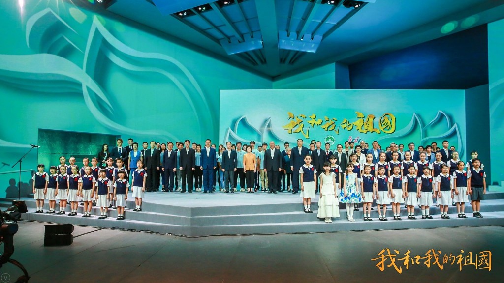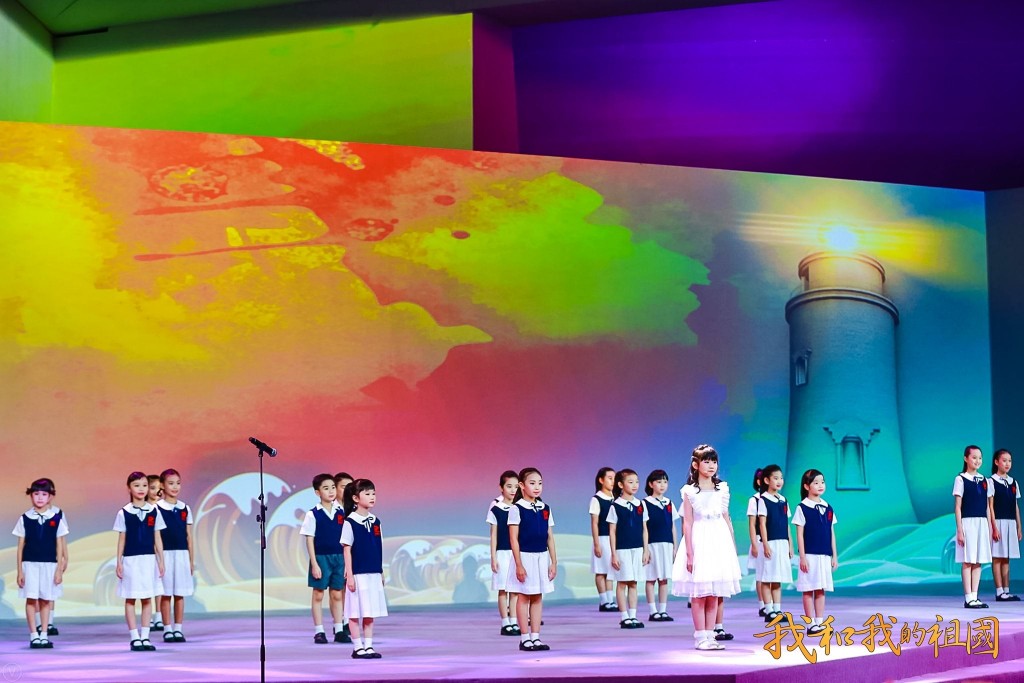 本校龍紫嵐同學領唱、周子喬同學朗誦以及小學合唱團卅多位學生演繹經典回歸主題曲《七子之歌》,還與所有嘉賓及參演人員一起演唱主題會歌曲《我和我的祖國》,表達了澳門青少年們對祖國的熱愛之情。