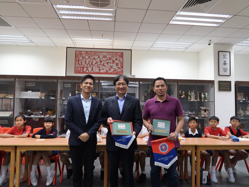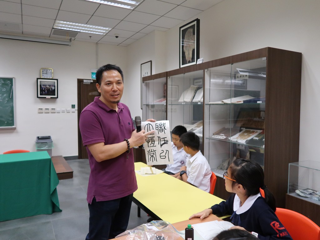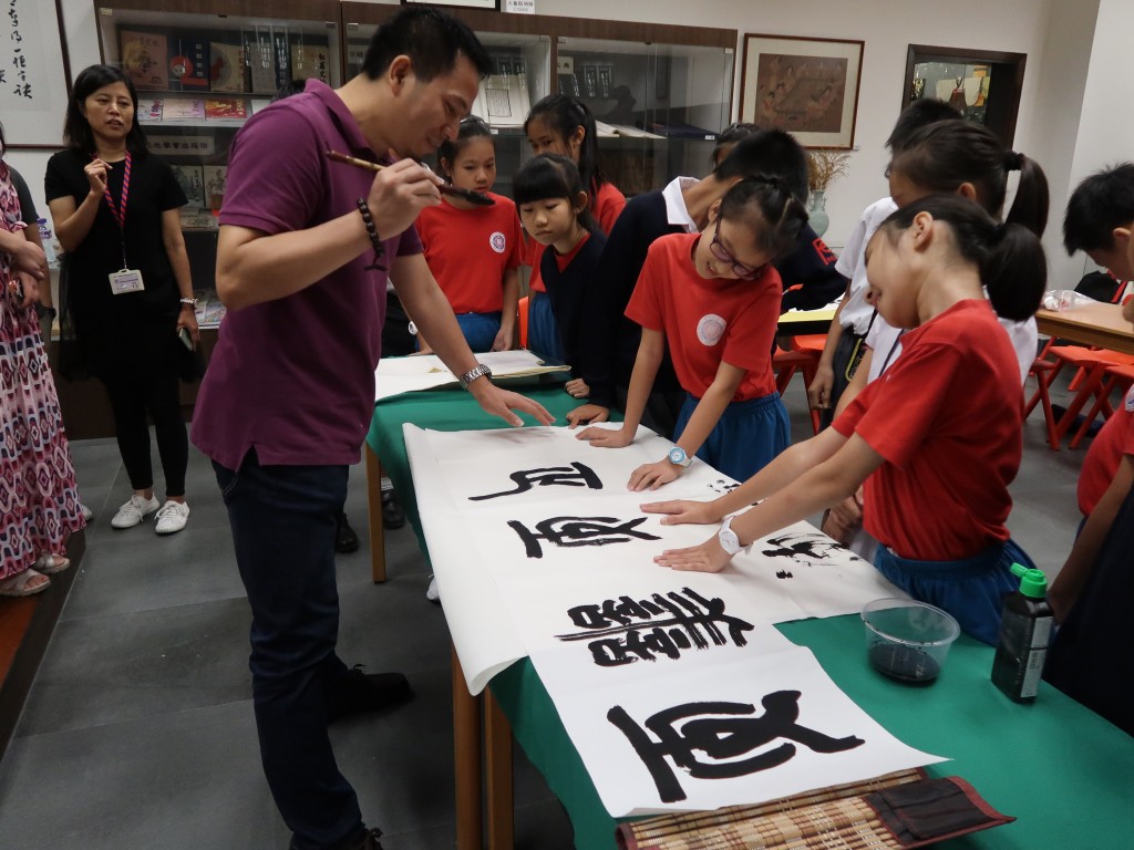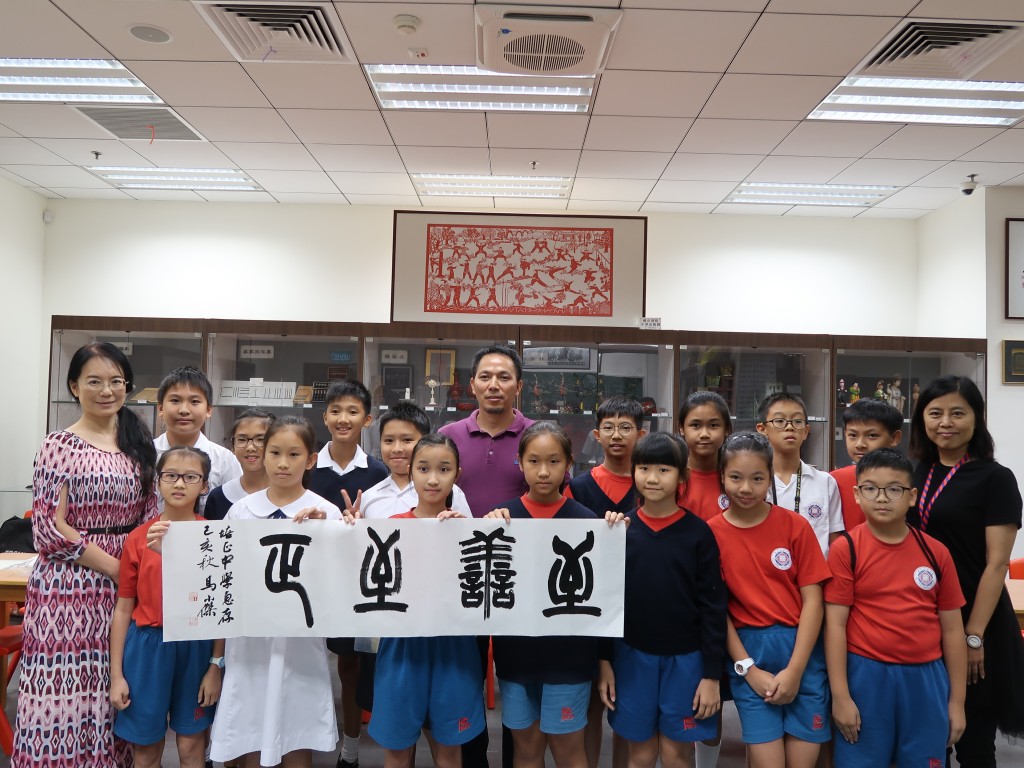 中國文聯副主席、中國書法家協會副主席、浙江大學人文學院院長陳振濂,重慶市渝州書畫院副秘書長馬小傑蒞臨本校指導交流,陳敬濂副校長接待,並向嘉賓致送紀念品。兩位書法家饒有興致地參觀中華文化館,陳主席高度讚許本校通過豐富的歷史文化實物展品,充分展示中華文化,推動歷史文化教育,並表示本校頗具特色的經驗做法可以作為樣板向內地推廣。陳主席亦鼓勵學生們以書法為媒,關注中國傳統文化,期望同學們學好中國字,寫好中國字。馬小傑老師向二十位小六學生介紹書法藝術的發展,書寫的練習技巧,點評學生的書法作品,並揮毫潑墨示範,即場書寫「至善至正」贈與本校,祝賀培正創校130周年。同學們近距離接觸書法家,感受書法藝術的魅力,頗有獲益。