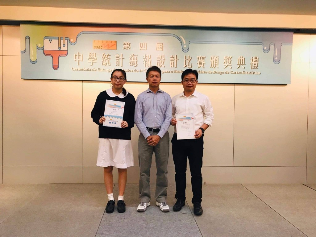 「第四屆中學統計海報設計比賽」頒奬禮今午於貿促局多功能會議廳舉行。本校高三善班陶昶同學從137支參賽隊伍中脫穎而出,以作品「回歸前後澳門居民結婚離婚狀況的變遷」獲優異獎;梅致常老師獲優秀指導教師奬。