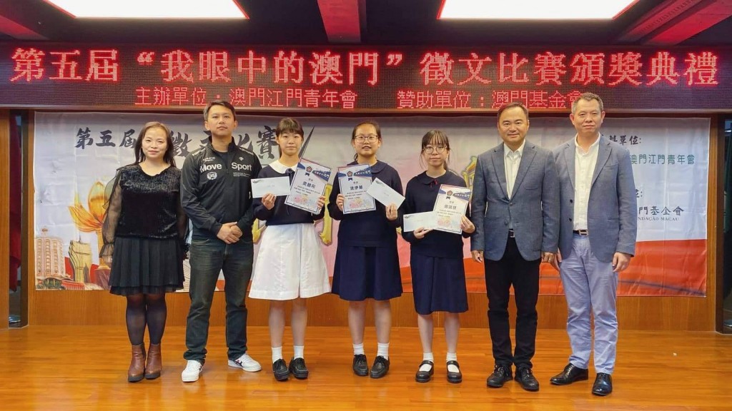 本校同學參加由澳門江門青年會主辦的第五屆「我眼中的澳門」徵文比賽,獲取佳績。高二信項一凡獲一等獎,初二善梁茵彤獲二等獎,高二愛周藹慧及高一望梁伊蕎獲三等獎。