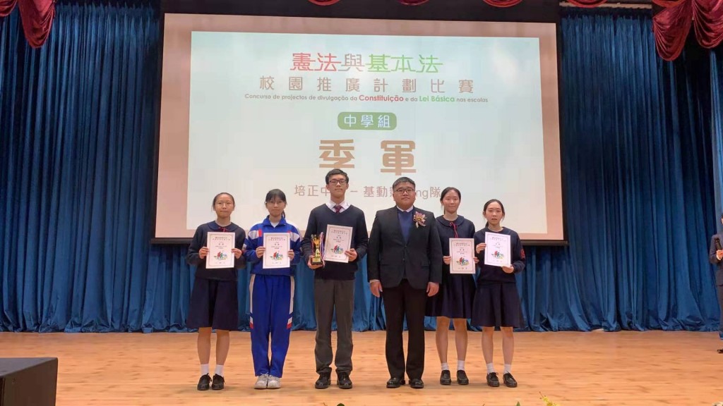 本校學生近期積極參加由澳門基本法推廣協會、法務局、教育暨青年局聯合舉辦的全澳「憲法與基本法校園推廣計劃」比賽,各小組透過多元平台,設計了各種豐富有趣的活動在全校推廣基本法,令校園充滿濃厚的法律研習氛圍,並榮獲中學組獎項。