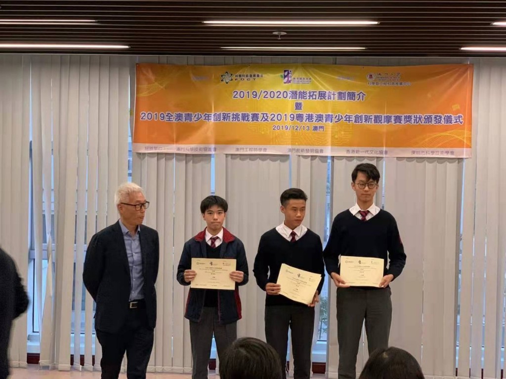 由科學技術發展基金及教育暨青年局主辦的2019年全澳青少年創新挑戰賽今日於澳門大學舉行頒獎典禮,獲獎同學如下: