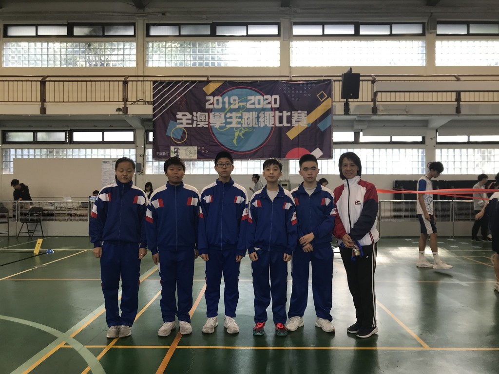 由教育暨青年局、中國澳門跳繩總會主辦的2019/2020全澳學生跳繩比賽,於12月14-15日在鮑思高體育館舉行,我校21名小學同學和5名中學同學組隊參加比賽。在第一場小學組的賽事中,同學們積極認真、全力以赴參賽,賽出了水平。
