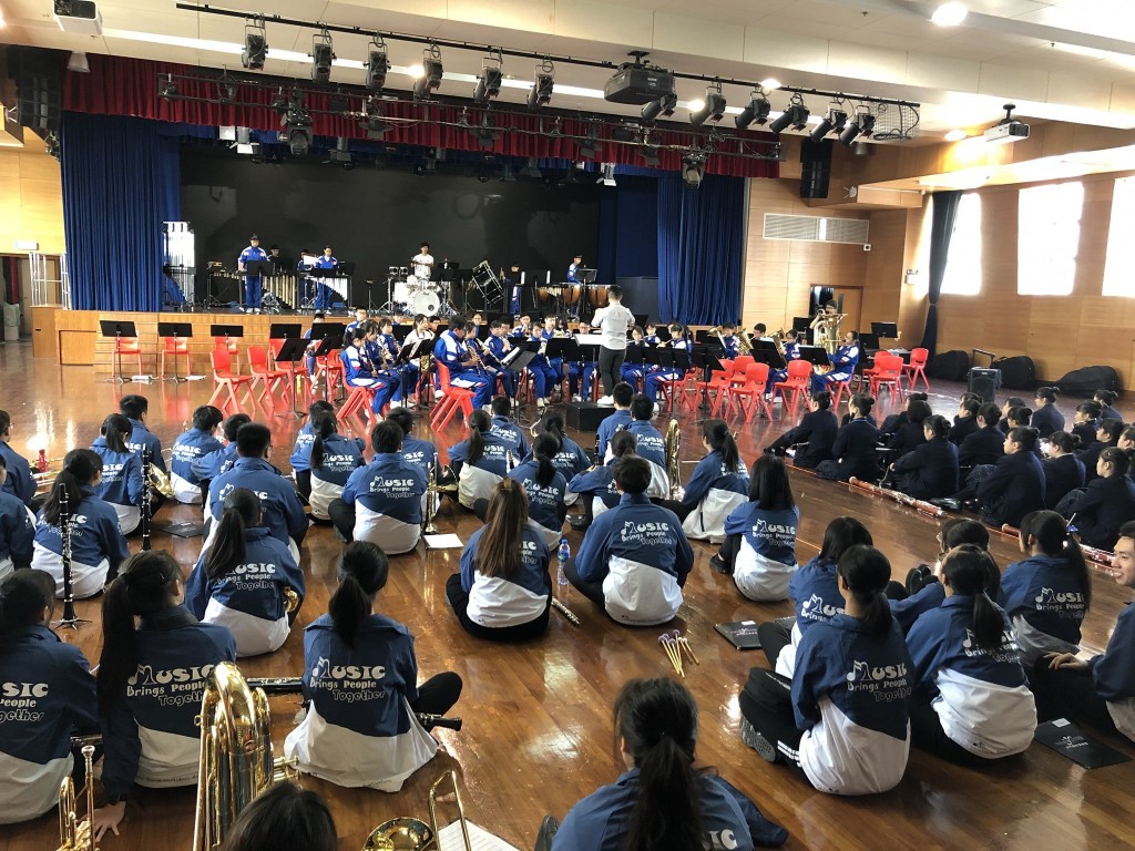 而在昨日上午,日本近江高等學校吹奏樂部、澳門青年管樂團成員來校,與本校管樂團交流。