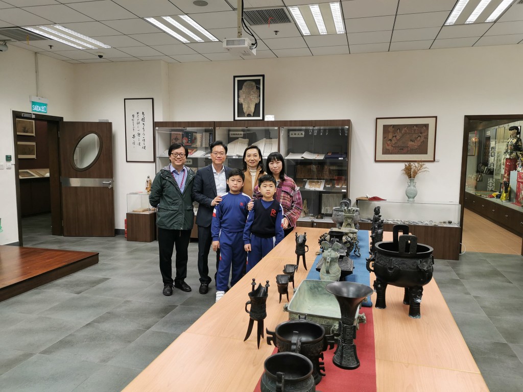 本校小四學生陳家熙、陳國熙之家長,今天向我校中華文化館贈送了一批工藝精湛的商周青銅器仿製品,深具歷史文化與藝術價值。