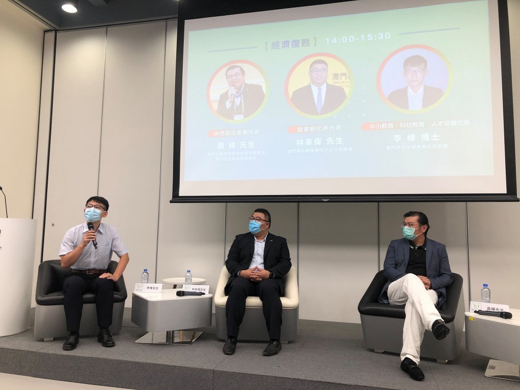 是次活動邀請了澳門旅遊業議會理事長黃輝先生、澳中致遠投資發展有限公司執行董事及澳門青年創業孵化中心行政總裁林家偉先生等講者嘉賓,和與會者討論澳門的經濟應如何在最短的時間內有效地逐步復甦,及澳門應否從單一的休閒旅遊產業轉型,以成就本地多元化的經濟。李棟老師從教育和人才培養角度分析澳門的人才培育與經濟發展之間關係。疫情當下對教育行業的衝擊和改變,以及中美衝突下澳門教育行業的契機,並呼籲澳門的青年人應對未來持擁抱挑戰的開明態度,融入大灣區的發展中。