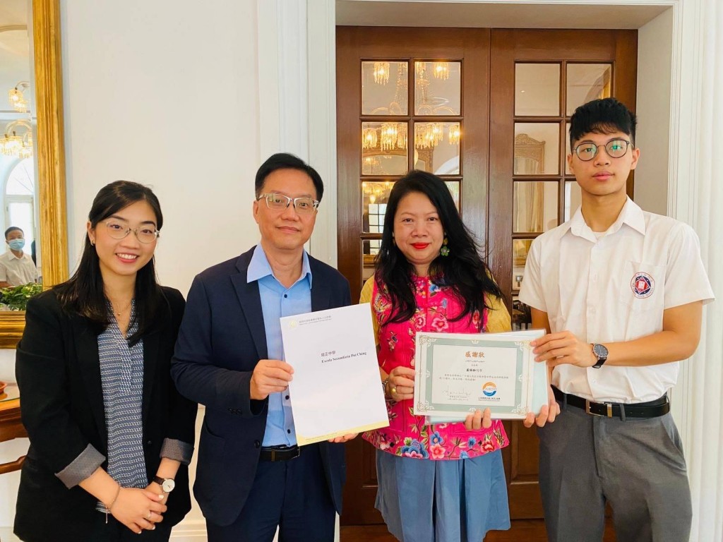 1945年9月2日是抗日戰爭勝利紀念日,9月3日被定為中國人民抗日戰爭勝利紀念日。高錦輝校長、胡鈞再同學日前出席由公信國際仲裁(澳門)協會舉辦的“中國人民抗日戰爭暨世界反法西斯戰爭勝利七十五周年”徵文活動。