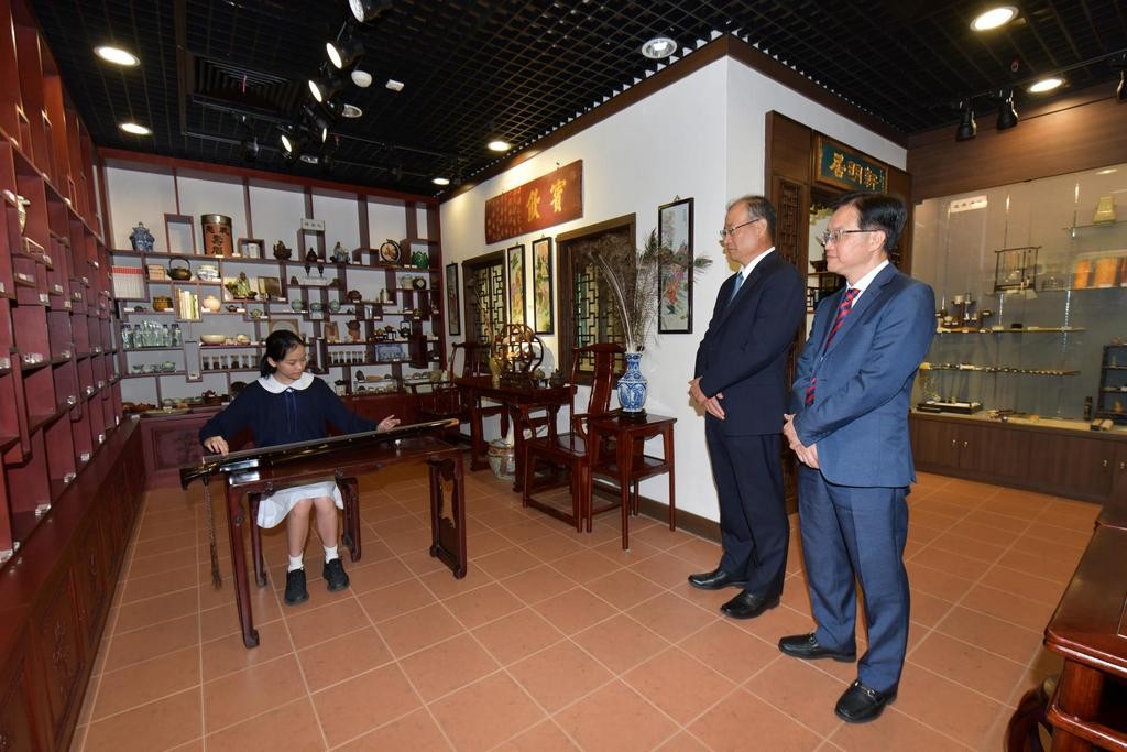 為了解本校傳承中華文化和發展創新科技教育的情況,來賓先後參觀了本校的中華文化館與創新科教館。文化館主館鍾春暉博士介紹館內設計和藏品的種類,表示通過館內濃厚的文化氣息,拉近學生與傳統文化的距離,使他們有親切體會。創新科技主任劉冠華介紹了館內的先進設備以及本校推動創新科技教育的發展歷程,通過STEAM課程提升學生的學習興趣。此外,李光行長還視察學生上課的實況,細心聽取學生的解說和意見,了解他們的學習情況。