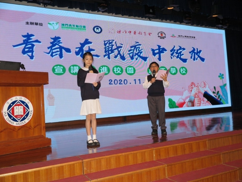 今日上午,由澳門青年聯合會、澳門高等教育發展促進會、澳門中華教育會、澳門天主教學校聯會、澳門公職教育協會聯合組織之“青春在戰疫中綻放”澳門宣講報告會在本校舉行。