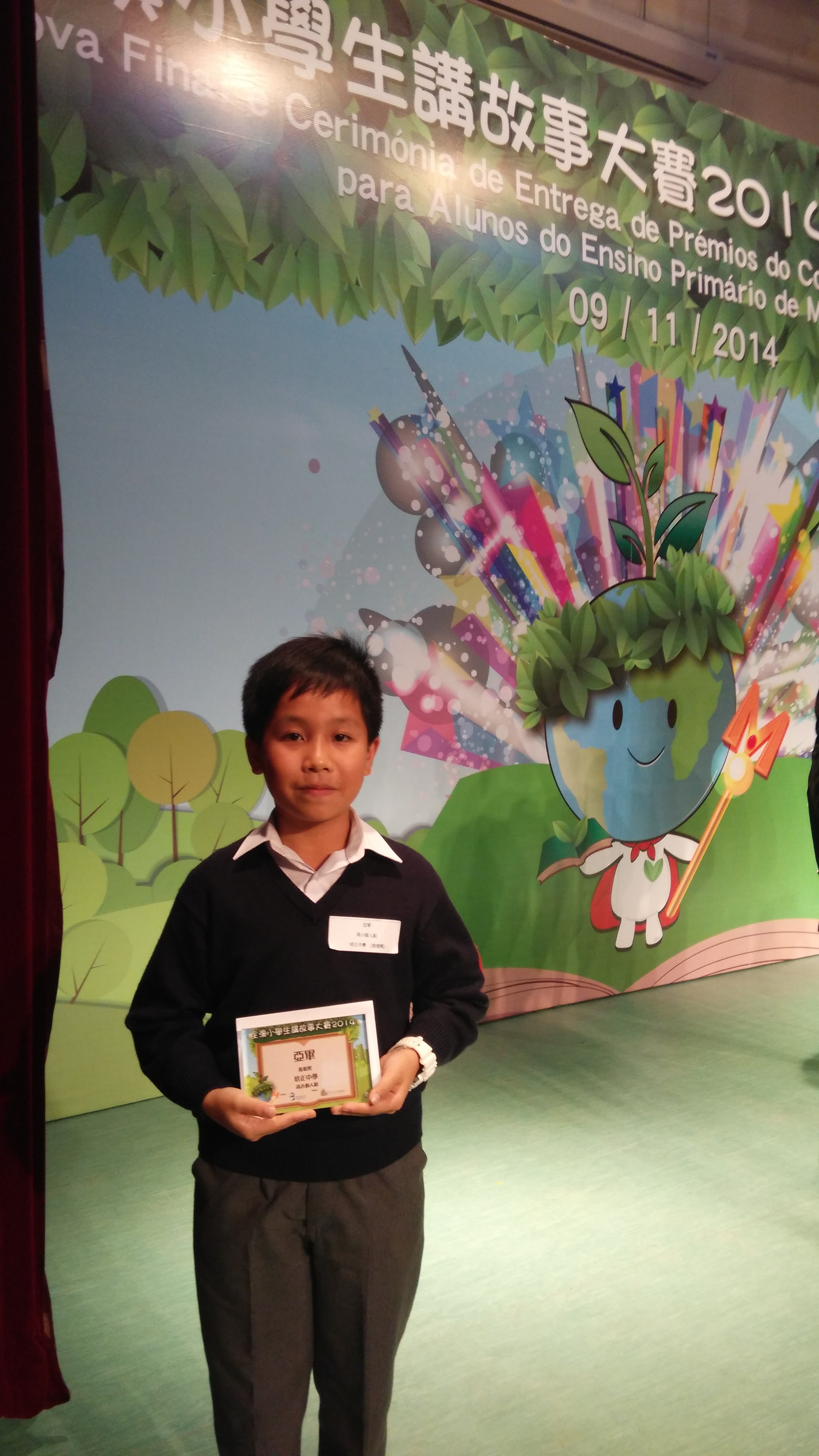 由教育暨青年局主辦之「全澳小學生講故事大賽2014」頒獎禮已於日前舉行,本校小六馮俊熙獲得亞軍,表現不俗。
