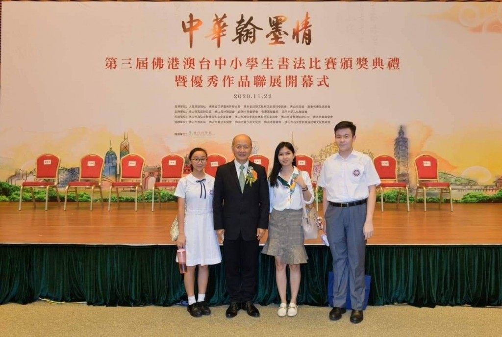 本校同學參加由佛山市政協辦公室、佛山海外聯誼會、台灣中華書學會、香港漢榮書局、澳門中華文化聯誼會、佛山市政協文教體衛和文史委員會、佛山市政協港澳台僑和外事委員會、佛山市委台港澳辦公室、香港詩書聯學會聯合舉辦的第三屆中華翰墨情佛港澳台中小學生書法比賽,初三信黃浩政、初三愛陳鈞蕙獲得佳作獎。