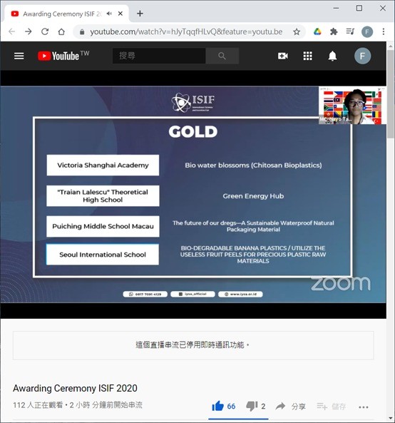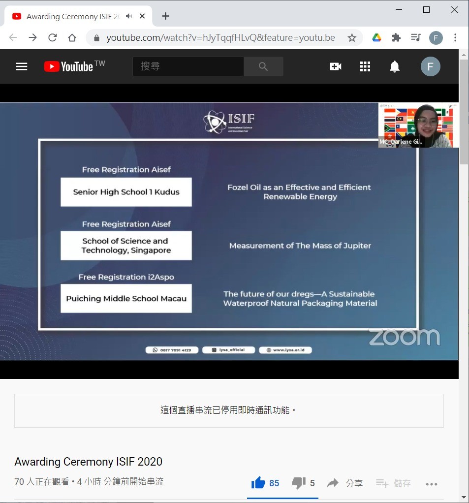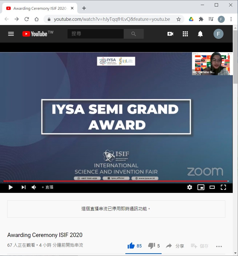 第6屆International Science and Invention Fair (ISIF)比賽2020-11-09