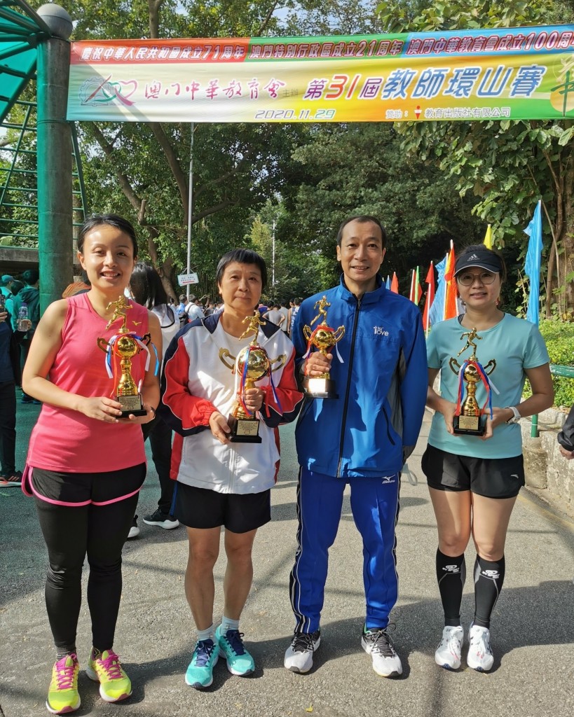 中華教育會主辦之教師環山賽今早舉行,本校老師踴躍參與,在各自的組別中,李瑞英老師蟬聯冠軍,梁永棠主任、吳欣霞老師獲第四名,陳雅雯老師第七名。