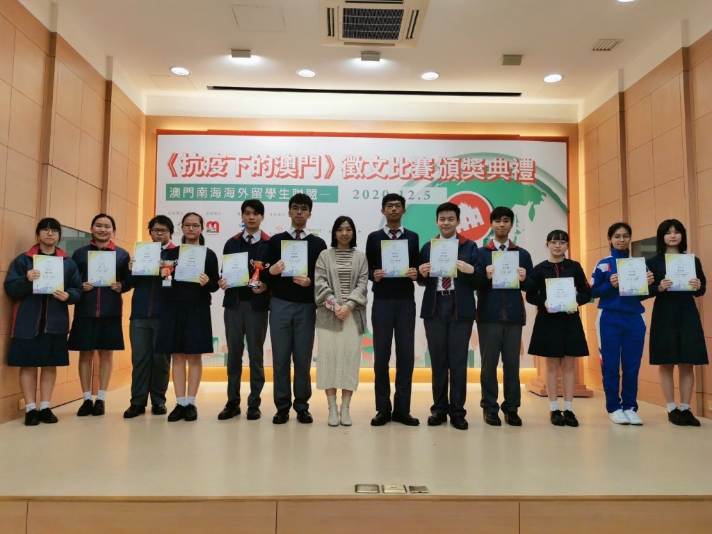 本校同學早前參加由澳門南海海外留學生聯盟主辦的《抗疫下的澳門 》徵文比賽,獲取佳績。高一望賴悅鋆、高三信劉家裕分別獲高中組金獎、銅獎,高三信劉慶翔、何梓為獲高中組優異獎,高三信項一凡、葉漢天、鄭欣樺,高二望莫鎧澤及高一善楊寧獲高中組入圍獎;初三善岳子惠獲初中組銅獎,初三信蕭聖桐獲初中組優異獎,初三信馬昱琪、黃浩政、曾子樂獲初中組入圍獎。