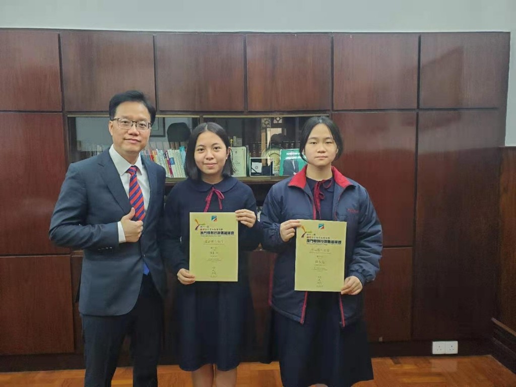 勞工事務局於日前舉辦第十一屆穗港澳蓉青年技能競賽澳門特區選拔賽頒獎典禮。今屆競賽選手是通過公開選拔方式挑選,選手們先通過入圍賽爭奪入讀強化課程之資格,經過約一百至三百小時不等之培訓後再進行決賽,以爭奪2021年代表澳門到成都參賽的資格。經選拔後,本校高二文組兩位同學胡凱琳、鍾翠庭,分別取得商品展示技術的冠軍及季軍,可喜可賀。
