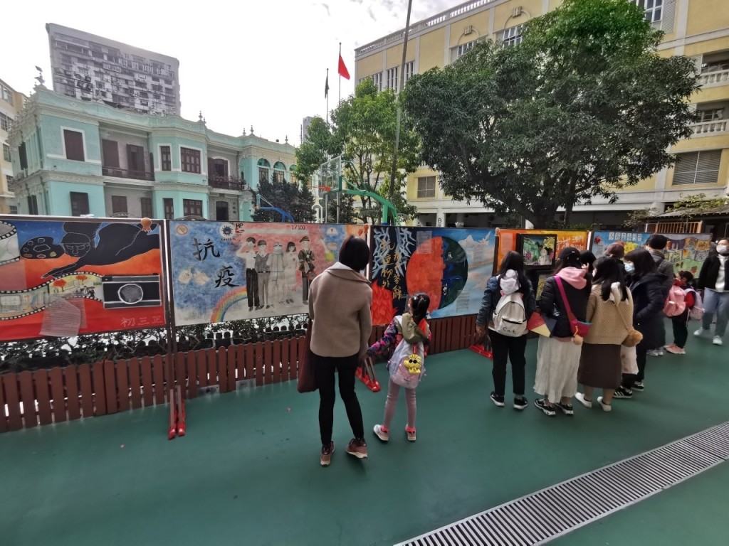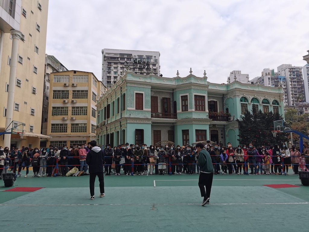 全校今早舉行聖誕慶祝會,各課室一片歡樂。中學壁報比賽作品今天在操場展出,各班設計別具特色,表達齊心抗疫之主題。今年的聖誕園遊會,為減少聚集,特分為上、下午舉行,遊戲攤位甚受歡迎。舞蹈隊、音樂學社、弦樂團、管樂團表演精彩節目,令校園添上和諧愉悅的氣氛。