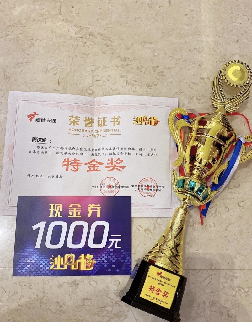 周沫涵在嘉佳衛視少兒聲樂大賽脫穎而出2021-01-05