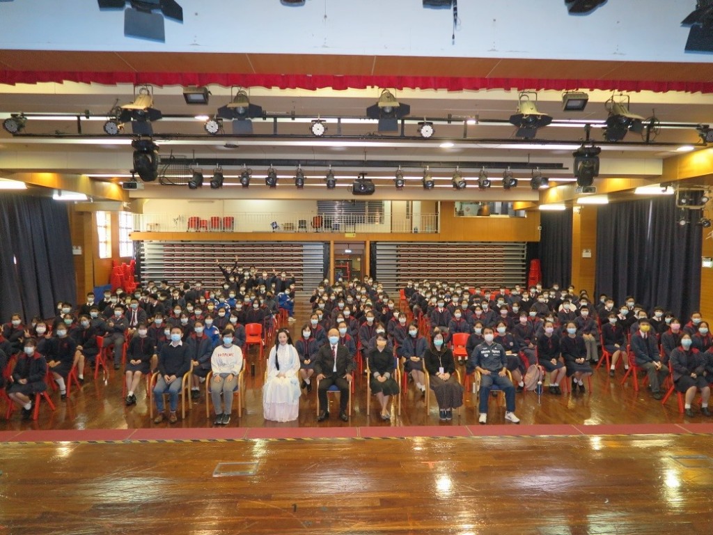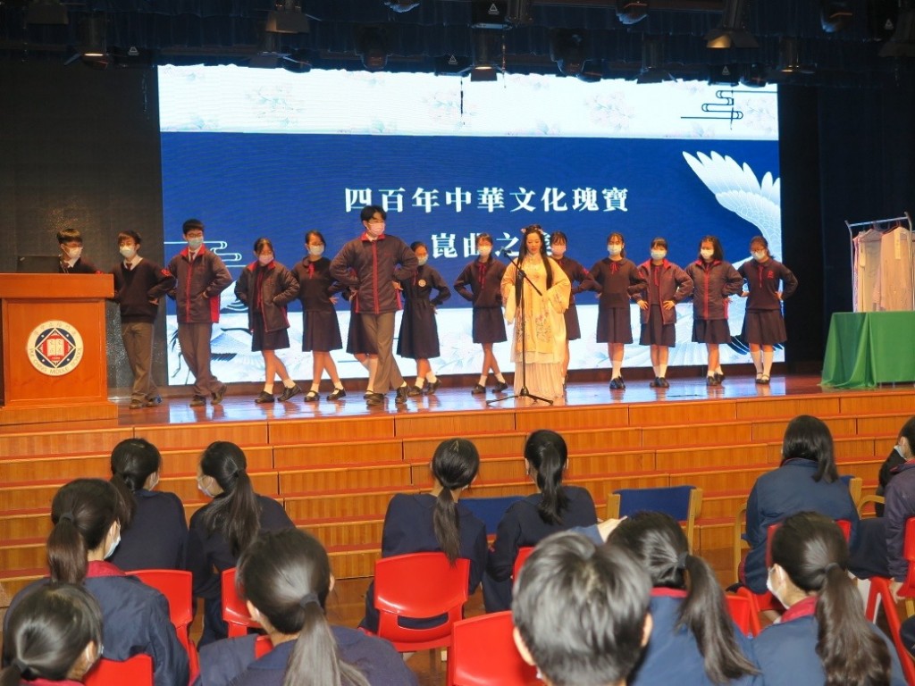 今日早上,澳門中華崑曲文化協會大會主席、粵港澳大灣區青年總會副主席及澳門區主席李卉茵博士來到母校培正中學禮堂,在郭敬文副校長致贈本校校旗及出版刊物《紅藍蕙風》紀念品後,開始講演「四百年來中華文化瑰寶崑曲之美」。