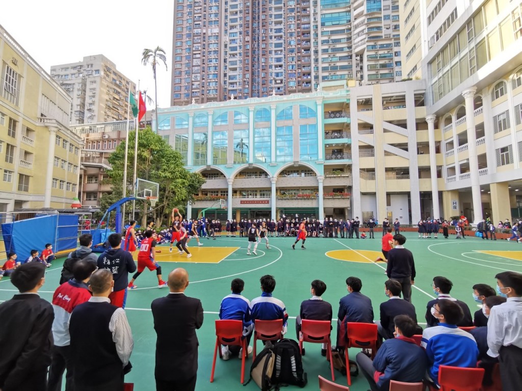 今日傍晚,班際籃球賽男子冠軍隊伍高三善班,與教職員隊作友誼賽。