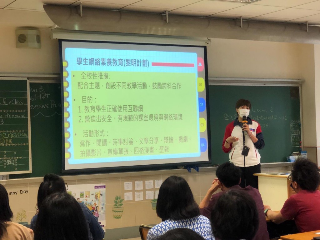 日前,應澳門教育及青年發展局、中華教育會邀請,本校小學部英文科梁紫君老師及中文科陳美容老師舉行題為「互聯網年代下小學生網絡素養教育」講座。透過講座,兩位老師分別以英文、中文兩科的實例作分享交流:在互聯網年代,如何在不同學科不同年級中開展教學活動以提升小學生的網絡素養。近40名來自本澳不同學校的老師參與講座,進行互動交流。