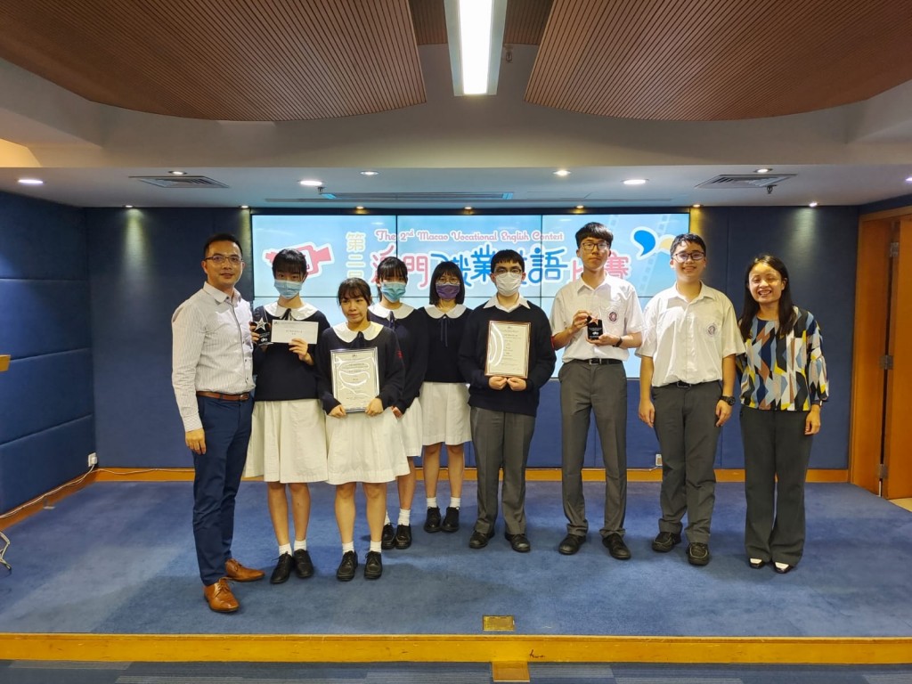 為鼓勵澳門旅遊從業員提升英語能力,以有助澳門作為世界旅遊休閒中心的持續發展,澳門生產力暨科技轉移中心於本年續辦「第二屆澳門職業英語比賽」。比賽以觀光及旅遊服務業職業英語為主題,分學生組(包含中學及大專院校)及公開組,參賽者以隊伍形式參加,提交圍繞主題而拍攝的短片,每組分別設有金獎、銀獎、銅獎及創意獎各一名。本校學生積極參加,且表現出色,奪得學生組別之銀獎以及銅獎,得獎名單如下: