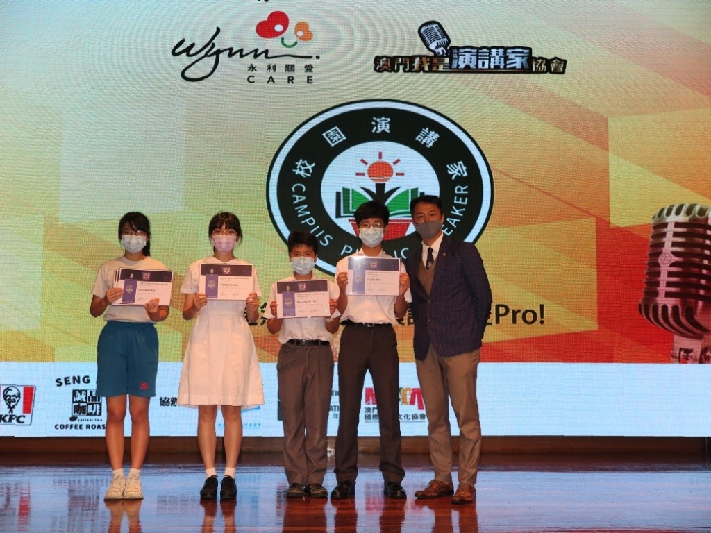 5月11日上午,澳門我是演講家協會為本校高一高二學生舉行「校園演講家」系列活動中學巡迴講座,澳門我是演講家協會創會會長、校園演講家活動發起人黎俊文先生以及校園演講家演講文化推廣大使譚僑立先生、周啟陽先生和梁偉業先生蒞臨出席。