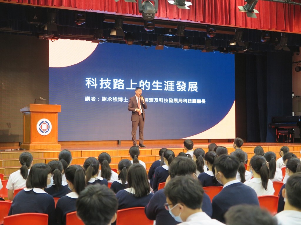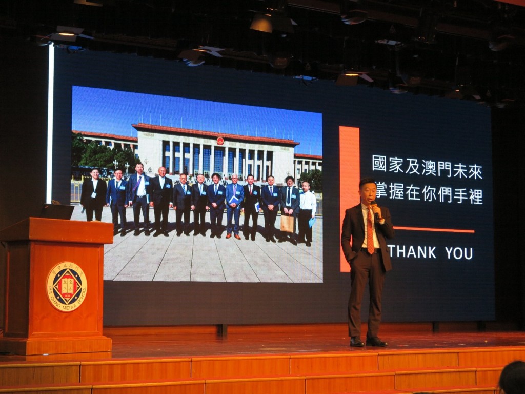 為提升學生對澳門科技產業發展的認識,了解當前資訊及未來展望,本校邀請了經濟與科技發展局科技廳廳長謝永強博士於6月8日上午來校,主持「科技路上的生涯發展」主題講座。高二級同學認真聆聽並積極發問,獲益良多。最後謝永強廳長寄語學生掌握自己的未來,堅持夢想,為國家及澳門科研獻出自己的力量。