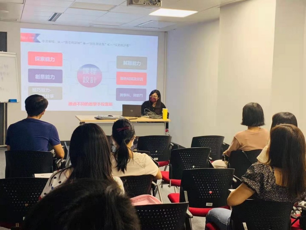 培訓活動中,黃老師分享本校視藝科的課程設計、展示了資訊科技結合下的視藝科發展及教學案例,並和參與培訓的老師們交流教學心得。