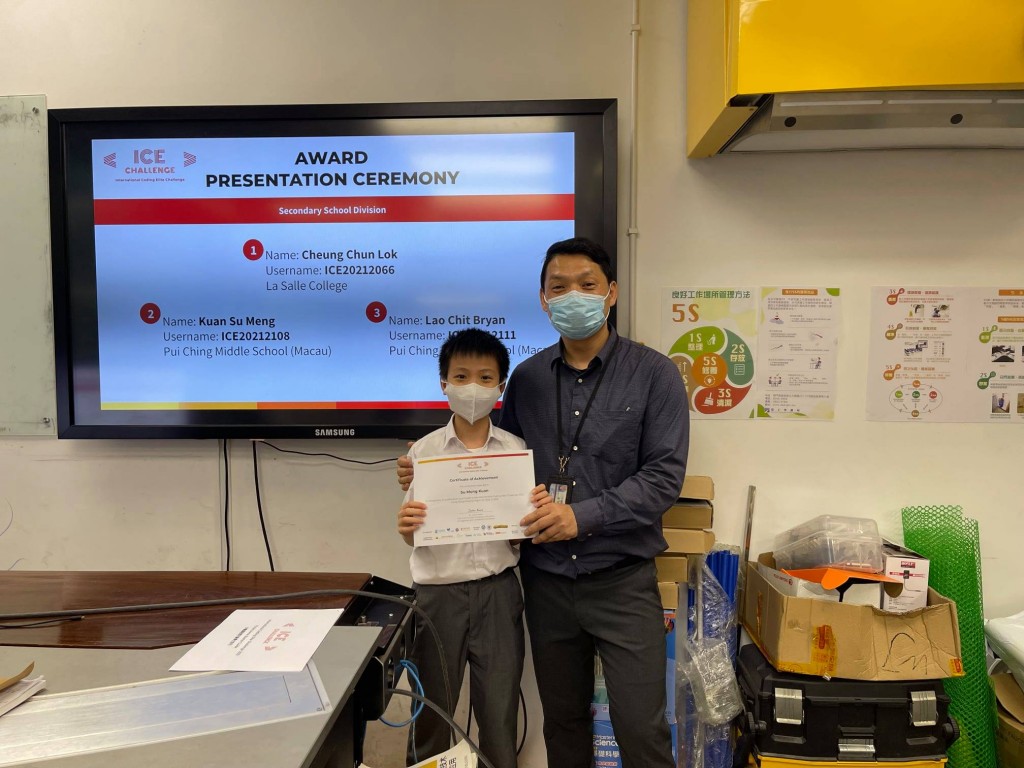由香港電腦教育學會、香港科技大學鵬程青年工程師學苑、澳門培正中學及啟瀚科技教育合辦的第二屆國際編程精英挑戰賽中,我校同學們經過初賽、複賽後, 共有11位同學進入決賽,最後取後優異成績,其中初一關樹銘及初二劉哲分別獲得中學組亞軍及季軍,並有5位同學獲得世界賽名額於八月份參加CodeCombat編程全球賽,爭奪殊榮。