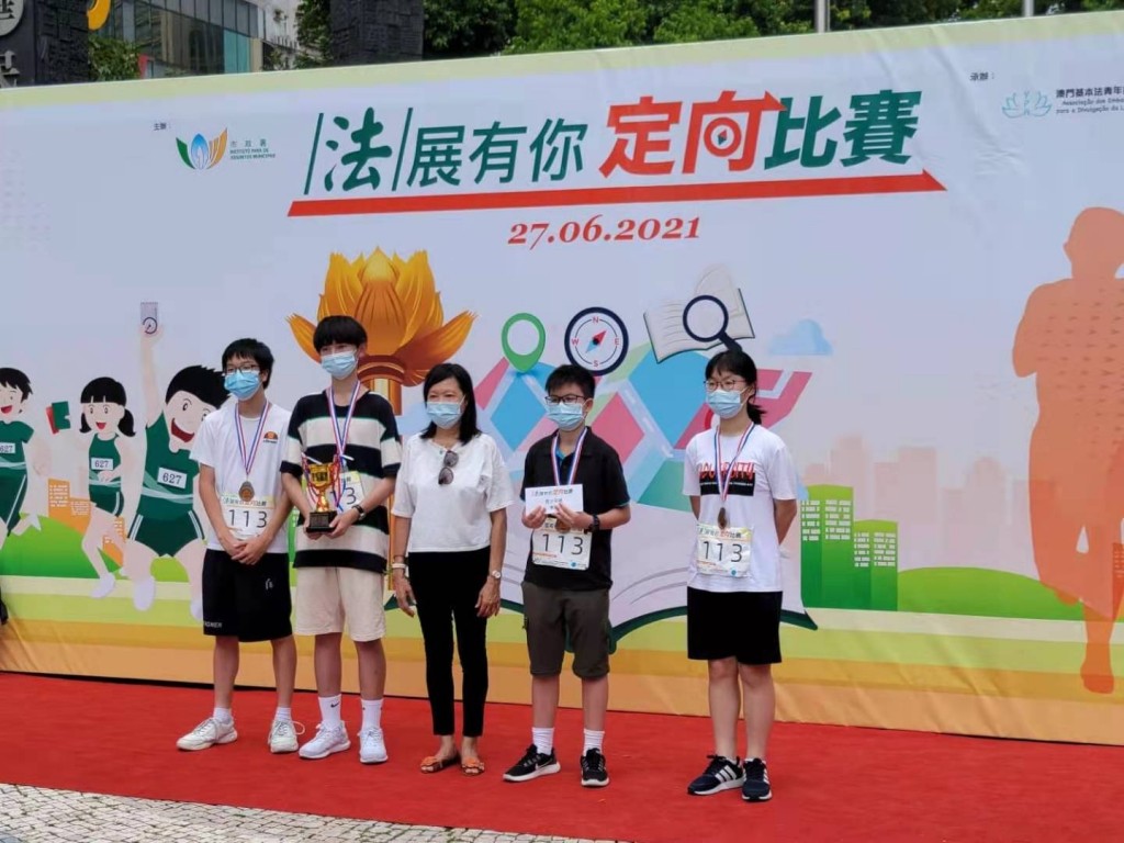 由市政署主辦,澳門基本法青年大使推廣協會承辦,中國澳門定向總會協辦的「法」展有你——定向比賽中,本校周家弘、許立知、吳曉汶、李泳湘同學獲青少年組季軍,譚貯文、黃浩政、張若詩、梁正朗同學獲最佳造型獎,初中隊伍梁皓情、劉千悅、胡祖怡、黃冬攸同學於高年級隊伍中獲得第五名佳績,值得鼓勵,獲獎隊伍分別由楊宇恆老師和張海珊老師指導。本次活動將基本法知識融合地理技能及體育運動,深化同學對憲法與基本法的認識和關係,同學們獲益良多。
