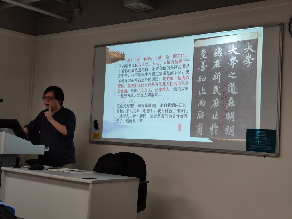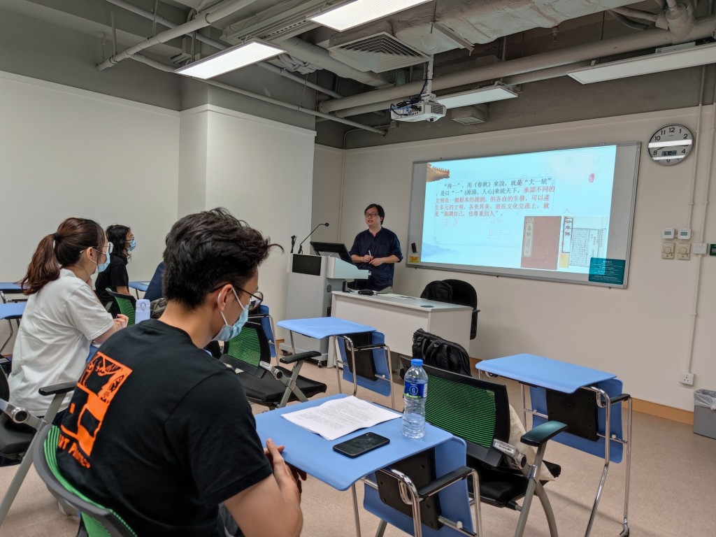 本校中華文化館主管鍾春暉老師,應教青局邀請,六月底在城市大學開設兩門國學經典導讀校本培訓課程:《史記》選讀、《學庸》選讀。前者從古代皇權形成的角度,探討〈項羽本紀〉、〈高祖本紀〉及〈漢文本紀〉三篇之旨趣;後者從中國教育史、學術史和思想史的角度,重新闡釋〈大學〉和〈中庸〉的現代意義。