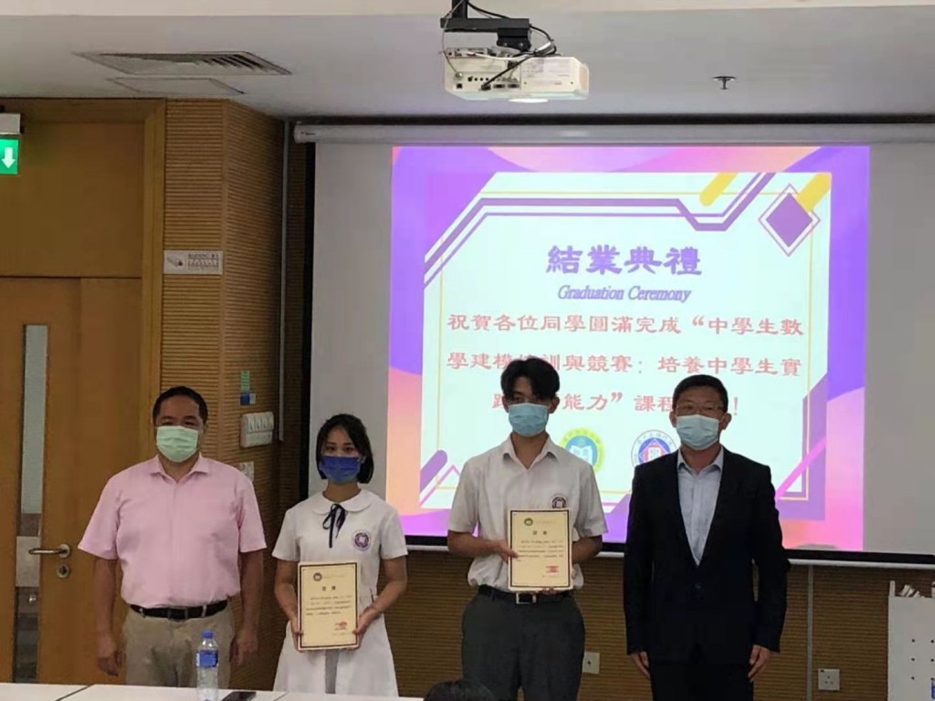 澳門科技大學與澳門培正中學於7月10日舉行「中學生數學建模培訓與競賽:培養中學生實踐創新能力」結業典禮暨證書頒授儀式。澳門科技大學科研管理處處長梁勇教授、資訊科技學院蔡占川助理院長、本校數學科主任胡俊明、多位科大教授及本校師生代表出席了在科大禮堂舉行的典禮。