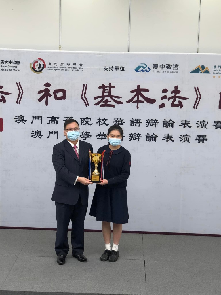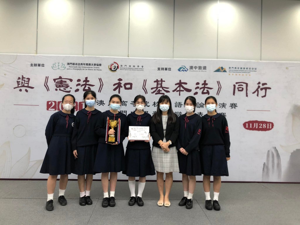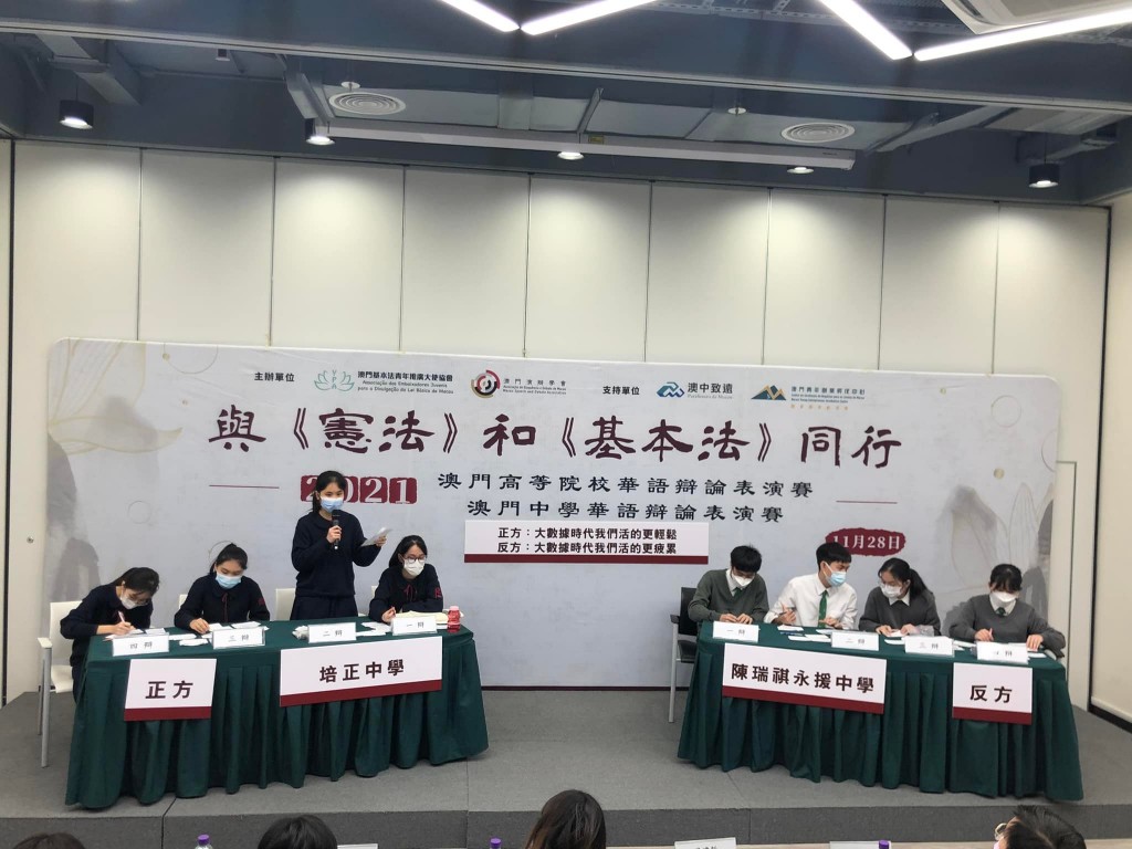 昨天下午,本校辯論隊應澳門基本法青年推廣大使協會邀請,參與由澳門基本法青年推廣大使協會與澳門演辯學會聯合主辦的「 與《憲法》和《基本法》同行——2021 澳門中學華語辯論表演賽 」。