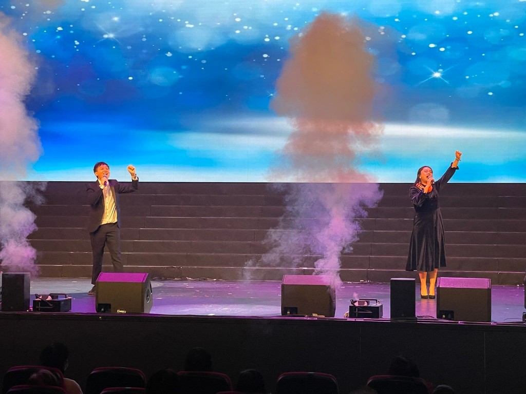 澳門愛國教育研究推廣工作委員會與澳門教師藝術團協會合辦“澳門教育界慶祝中國共產黨成立一百周年、新中國成立七十二周年、澳門特區成立廿二周年百年盛放文藝匯演”,於昨天下午假澳門銀河百老匯大舞台上演,節目豐富,與各界同賀三慶。本校何裕冠老師、葉健俊老師、譚重儀老師與各校老師攜手登台演出,展現澳門教師風采,充分體現教育界的大團結。