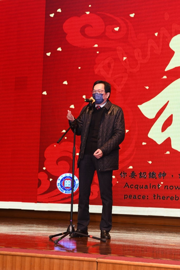高錦輝校長、同學會黃漢堅會長、教職員會鄭國康主席分別致詞,祝願新年如意吉祥。與會者互道新春祝福,喜氣盈門。