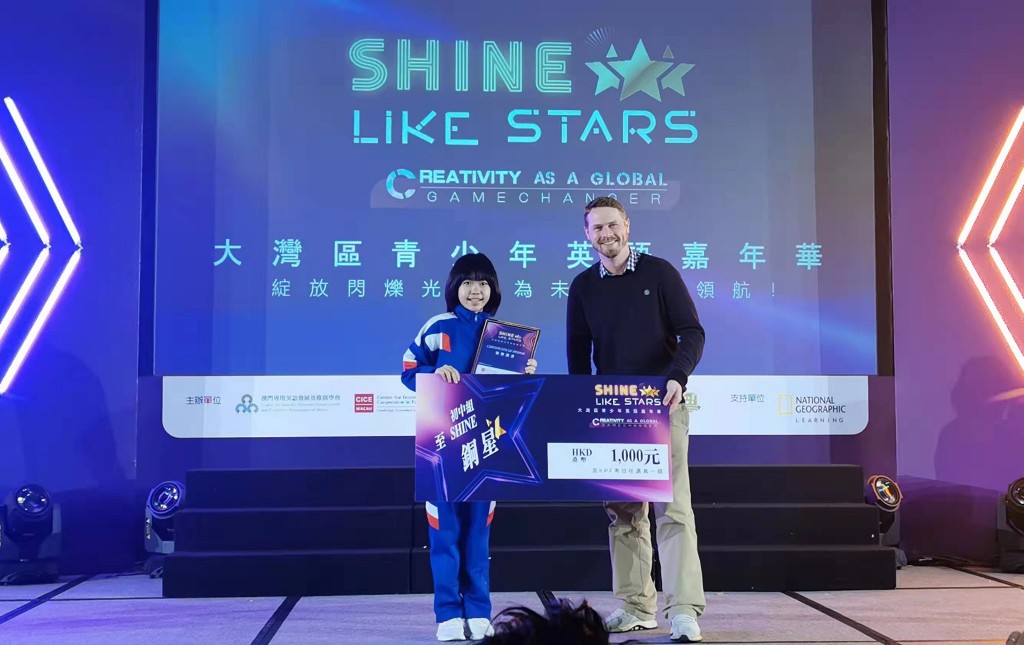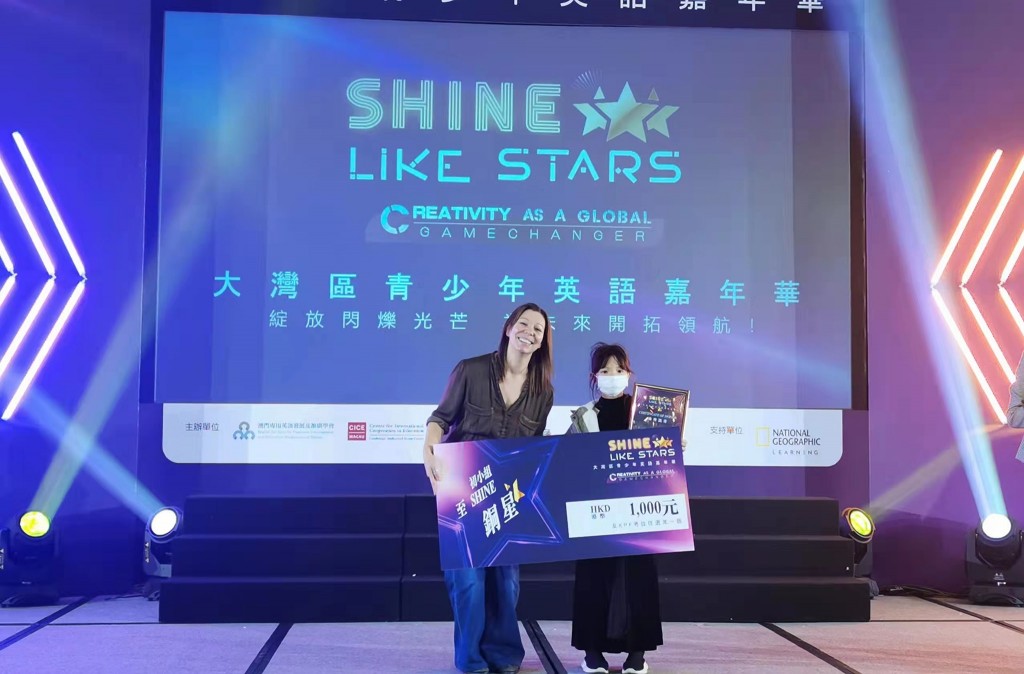 由澳門專用英語發展及推廣學會、國際教育合作中心舉辦之「Shine Like Stars 大灣區青少年英語嘉年華 」昨天進行決賽, 本校小二愛譚青瀾同學獲初小組季軍(指導老師:歐陽佩儀),初一光吳詠心同學獲初中組季軍(指導老師:黃煒雯、邵燕兒) 。